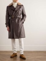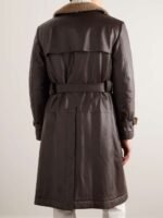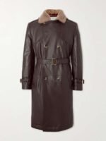 Double-Breasted Shearling-Trimmed Leather Trench Coat